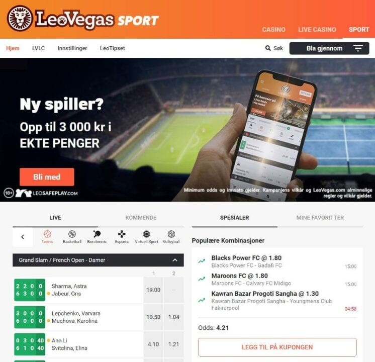 LeoVegas Sport is the casino's betting site, giving you access to both live odds and betting before match starts (pre-match). Let's take a closer look at the betting offer for the popular online casino. Find out if this is a betting page you should register before the Football Championship!