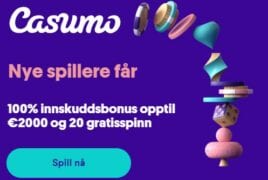 It is also positive that you can play through Casumo mobile, and get as good a gaming experience as on a desktop or laptop. Both odds, slot machines, live casino, jackpots and table games are available. Here you will find more than 2,000 games!