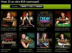 Do you want a more classic gaming experience? Then we recommend you check out the section with table games. Here is both Video poker, baccarat, blackjack, keno, craps and roulette. You can also play table games at Live Casino with a live dealer. Here are some live casino games: