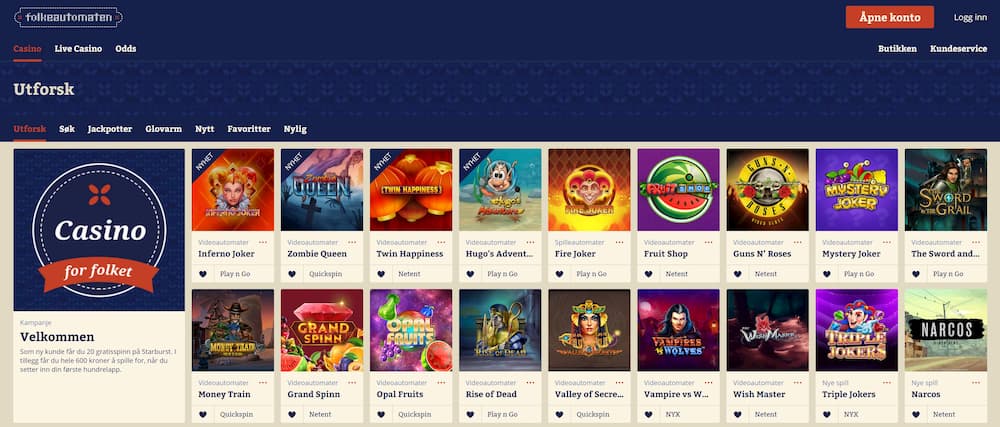 Folk machine Has for a long time built up a large and loyal supporter in Norway. The casino has done this by investing unicorned in the American market. Here in the yard it is American taste that prevails. In this review we make you familiar with everything that means.
