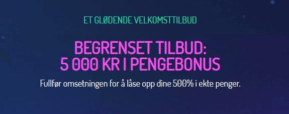 Remember that the turnover requirement of 20x must be performed before the bonus money is yours. This requirement must be carried out within 48 hours. To receive the highest bonus amount (NOK 5,000), you must deposit NOK 1,000.