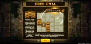 If you get the Avalanche feature under Free Falls, the corresponding multiplier will be 3x, 6x, 9x and 15x. Free Falls are activated if you get three or more symbols of the free falls type.