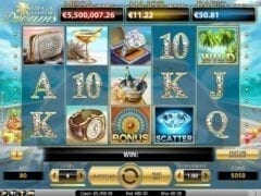 Mega Fortune Dreams can tempt with a variety of fun and sometimes lucrative bonus features. The wild symbol, which appears in the form of palm trees on a white beach, can replace all other symbols in the game (except the scatter and bonus symbol).