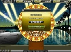 Behind the wheels on the slot you can glimpse a marina. You get the feeling of being in St. Tropez or a similar place, where wealth, casino games, cigars and yachts are part of everyday life. Thumbs up for a theme that is really in the style of the huge progressive jackpot!