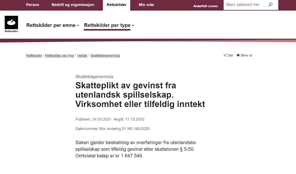 This case shows that it is possible to release tax on casino wines. However, the case is special. The main rule is therefore that you have to pay tax on casino winnings that exceed NOK 10,000.