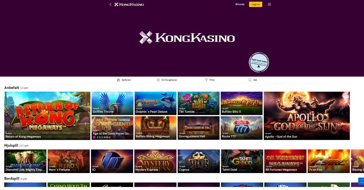 Many players will probably be a little disappointed when they visit Kongskasino. Since this is a American online casino There are no bonuses here.