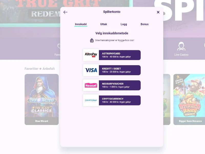 Register with Slotbox now and take advantage of the fantastic welcome offer consisting of 100% up to NOK 10,000 and 100 free spins.